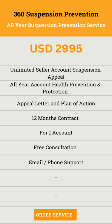 Amazon Suspension Appeal Support: Our Amazon seller suspension services include free consultation, fixed fees with unlimited revisions, free escalations, free attorney letters, and 24/7 support to address your Amazon suspension appeal needs.